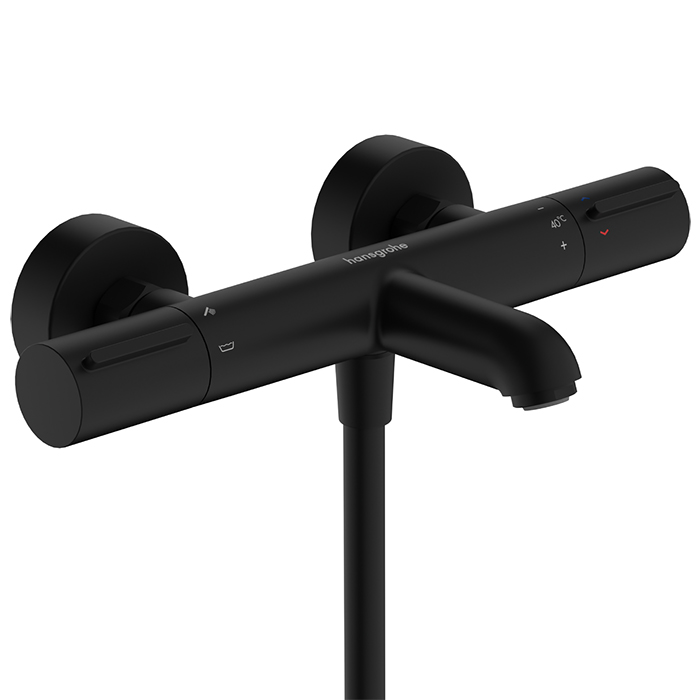 Hansgrohe Ecostat Element Термостат для ванны, запорный клапан, излив 17,7 см, цвет: матовый черный 13347670 и другие сантехнические изделия бренда характеризует надежность, высокое качество и продолжительный срок службы. Изделие в стилистике лофт впечатляюще будет смотреться в различных цветовых решениях помещения.