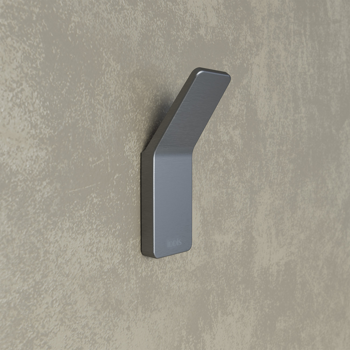 Iddis Slide Крючок одинарный, сплав металлов, цвет: графит SLIGM10i41 и другие сантехнические изделия бренда характеризует надежность, высокое качество и продолжительный срок службы. Изделие в стилистике hi-tech впечатляюще будет смотреться в различных цветовых решениях помещения.