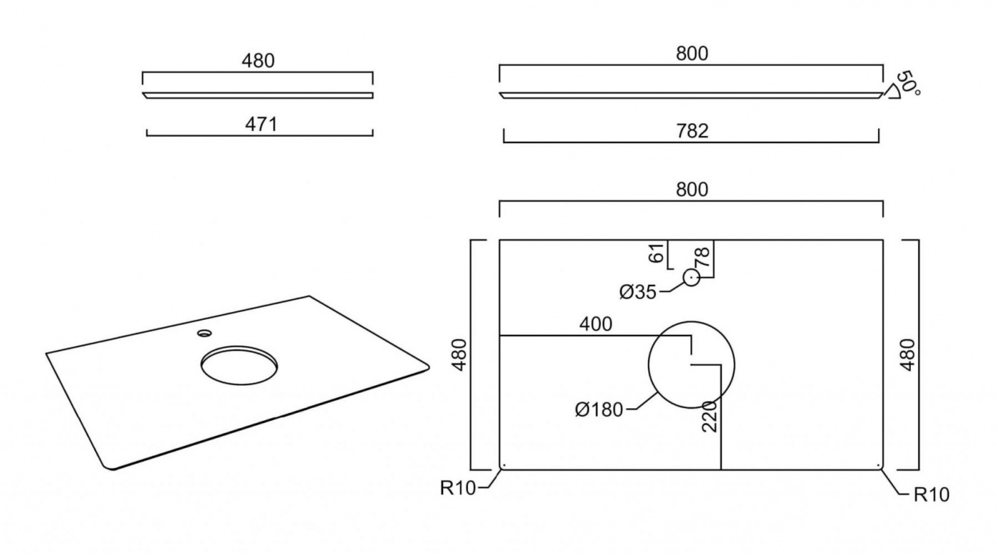 Kerama Marazzi Plaza Столешница для накладных раковин 80x48x1,1h см, цвет: другие цвета PL1.VT95.80 и другие сантехнические изделия бренда характеризует надежность, высокое качество и продолжительный срок службы. Изделие в стилистике арт-деко впечатляюще будет смотреться в различных цветовых решениях помещения.