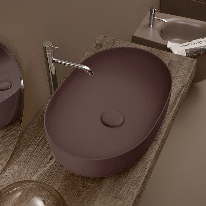 Kerasan Nolita Раковина чаша 60x40x15h см, без перелива, цвет: Borgogna matt 534375 и другие сантехнические изделия бренда характеризует надежность, высокое качество и продолжительный срок службы. Изделие в стилистике лофт впечатляюще будет смотреться в различных цветовых решениях помещения.
