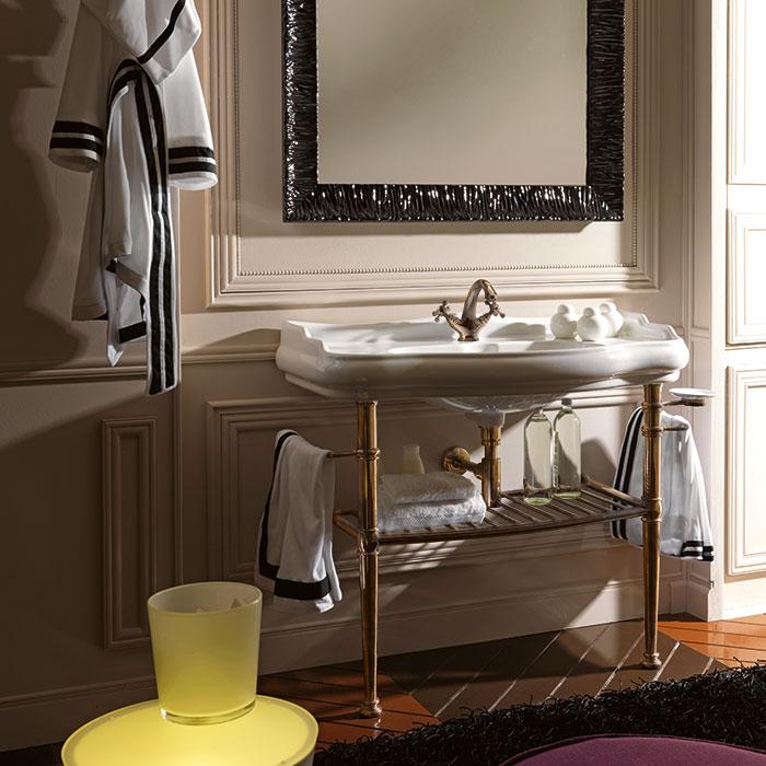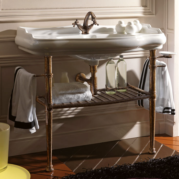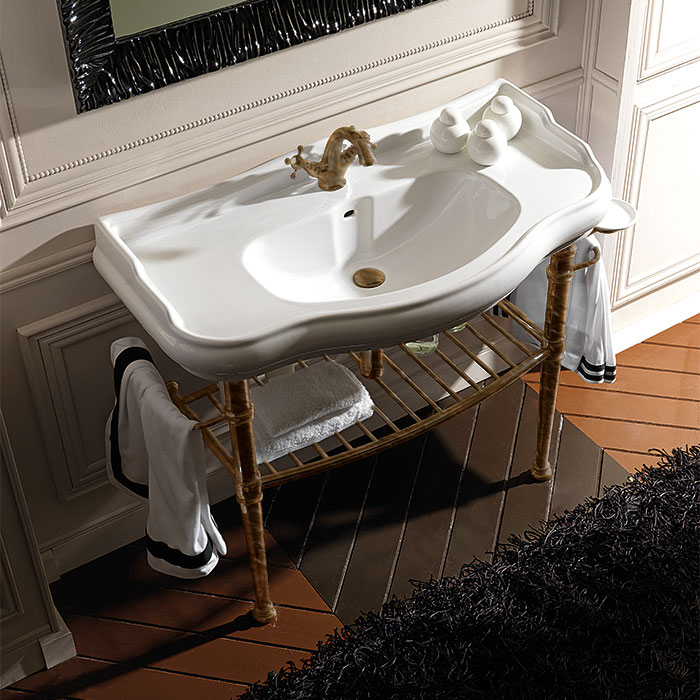 Kerasan Retro Консоль 100x54 см, под раковину на 100 см, с полкой, цвет: Bronzo 730093 и другие сантехнические изделия бренда характеризует надежность, высокое качество и продолжительный срок службы. Изделие в стилистике английская классика впечатляюще будет смотреться в различных цветовых решениях помещения.