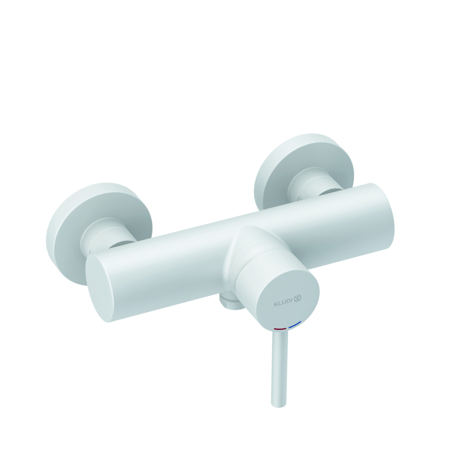 Kludi Bozz Смеситель для душа настенный, с рычагом, цвет: белый матовый 388315376 и другие сантехнические изделия бренда характеризует надежность, высокое качество и продолжительный срок службы. Изделие в стилистике минимализм впечатляюще будет смотреться в различных цветовых решениях помещения.