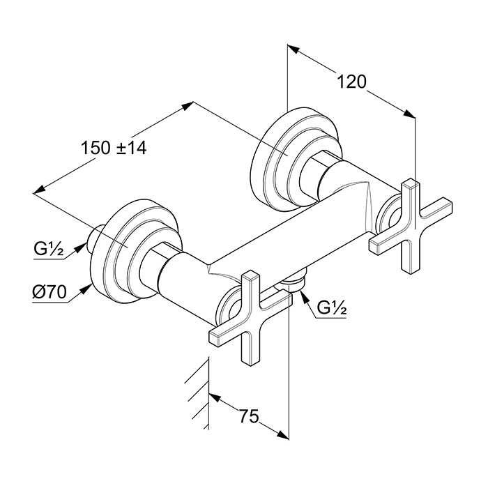 Kludi Nova Fonte Смеситель для душа DN 15 настенный, крестообразные рукоятки, цвет: хром 207100520 и другие сантехнические изделия бренда характеризует надежность, высокое качество и продолжительный срок службы. Изделие в стилистике лофт впечатляюще будет смотреться в различных цветовых решениях помещения.