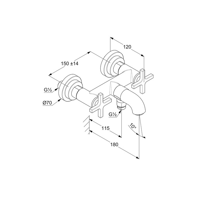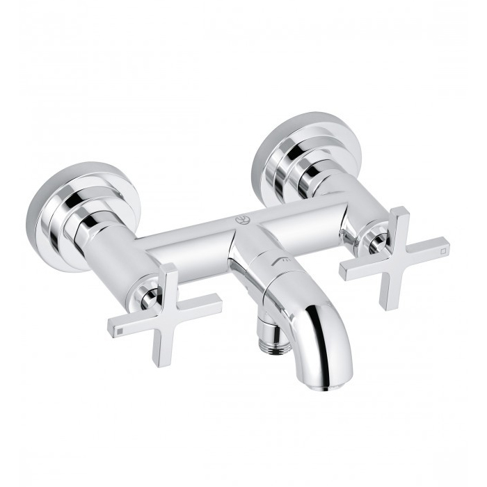 Kludi Nova Fonte Смеситель для ванны и душа DN 15 настенный, крестообразные рукоятки, цвет: хром 205400520 и другие сантехнические изделия бренда характеризует надежность, высокое качество и продолжительный срок службы. Изделие в стилистике лофт впечатляюще будет смотреться в различных цветовых решениях помещения.