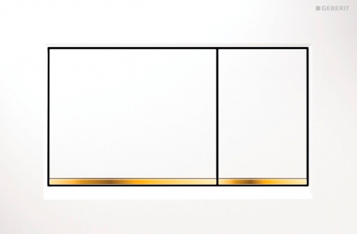 Geberit Sigma 30 Кнопка смыва для инсталляции, цвет: белый, полоска позолоченная 115.883.KK.1 и другие сантехнические изделия бренда характеризует надежность, высокое качество и продолжительный срок службы. Изделие в стилистике hi-tech впечатляюще будет смотреться в различных цветовых решениях помещения.
