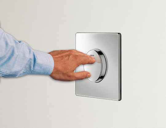 Grohe Skate Air Кнопка смыва для унитаза, пластик, цвет: хром 38564000 и другие сантехнические изделия бренда характеризует надежность, высокое качество и продолжительный срок службы. Изделие в стилистике hi-tech впечатляюще будет смотреться в различных цветовых решениях помещения.