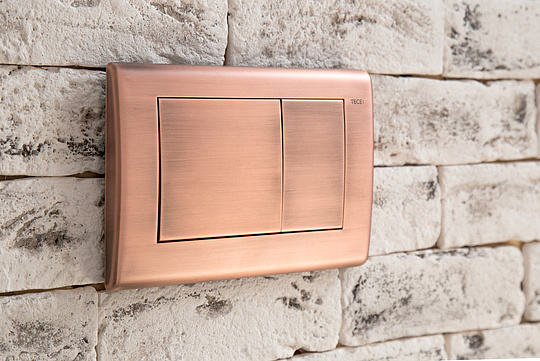 Tece Planus Кнопка смыва для унитаза, металл, цвет: состаренная медь 9240365 и другие сантехнические изделия бренда характеризует надежность, высокое качество и продолжительный срок службы. Изделие в стилистике минимализм впечатляюще будет смотреться в различных цветовых решениях помещения.