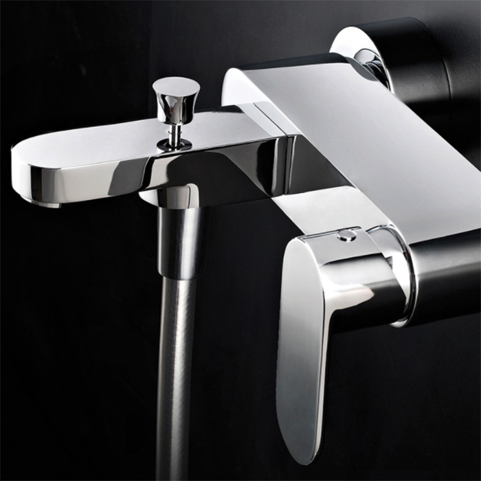 Maier Chik Смеситель для ванны/душа, настенный, цвет: хром 68 012CR и другие сантехнические изделия бренда характеризует надежность, высокое качество и продолжительный срок службы. Изделие в стилистике минимализм впечатляюще будет смотреться в различных цветовых решениях помещения.