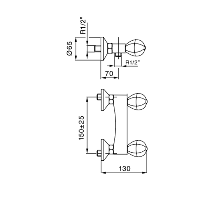 Maier Klass Смеситель для душа, настенный, цвет: хром 75 015CR и другие сантехнические изделия бренда характеризует надежность, высокое качество и продолжительный срок службы. Изделие в стилистике арт-деко впечатляюще будет смотреться в различных цветовых решениях помещения.