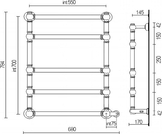 Margaroli Armonia 9-564 Полотенцесушитель электр. 68х78h (55), выкл. справа, цвет: bronze/old brass 95645505OBNB и другие сантехнические изделия бренда характеризует надежность, высокое качество и продолжительный срок службы. Изделие в стилистике прованс впечатляюще будет смотреться в различных цветовых решениях помещения.