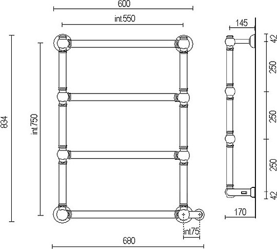 Margaroli Armonia 9-542 Полотенцесушитель электр. 68х83h (55), выкл. справа, цвет: bronze/old brass 95425504OBNB и другие сантехнические изделия бренда характеризует надежность, высокое качество и продолжительный срок службы. Изделие в стилистике прованс впечатляюще будет смотреться в различных цветовых решениях помещения.