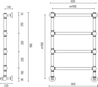 Margaroli Armonia 9-442 Полотенцесушитель водяной для ГВС 62,5х98h (int 55), нижнее, цвет: chrome 94425504CRN и другие сантехнические изделия бренда характеризует надежность, высокое качество и продолжительный срок службы. Изделие в стилистике неоклассика впечатляюще будет смотреться в различных цветовых решениях помещения.