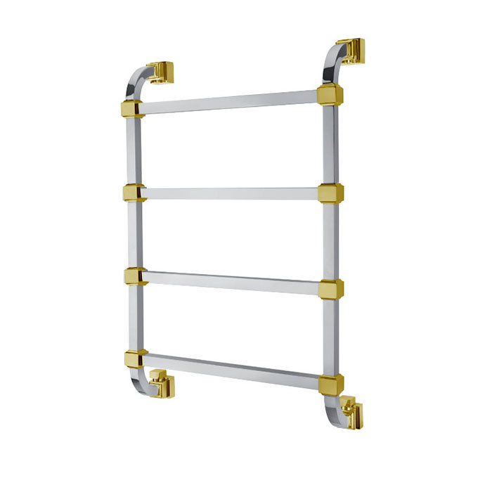Margaroli Concerto 732 Полотенцесушитель водяной для ГВС 53х81h (int 47), нижнее, цвет: chrome/gold 7324704CON и другие сантехнические изделия бренда характеризует надежность, высокое качество и продолжительный срок службы. Изделие в стилистике арт-деко впечатляюще будет смотреться в различных цветовых решениях помещения.