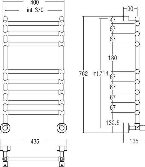 Margaroli Sole 464/8 Полотенцесушитель водяной для ГВС 43,5х76h (int 47), нижнее, цвет: chrome 4643708CRN и другие сантехнические изделия бренда характеризует надежность, высокое качество и продолжительный срок службы. Изделие в стилистике неоклассика впечатляюще будет смотреться в различных цветовых решениях помещения.