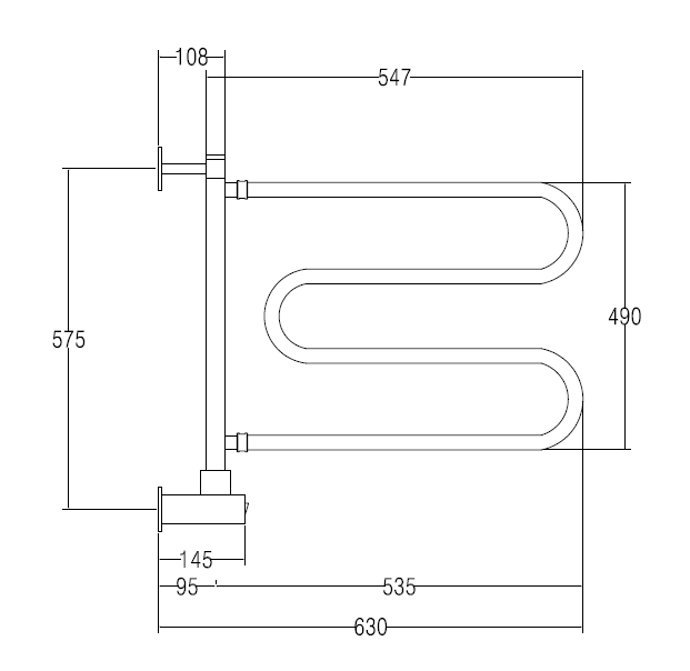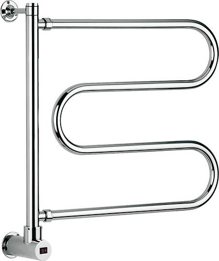 Margaroli Vento 500 Полотенцесушитель электрический поворотный 55х61h (57,5) нижнее, цвет: chrome 500CRB и другие сантехнические изделия бренда характеризует надежность, высокое качество и продолжительный срок службы. Изделие в стилистике арт-деко впечатляюще будет смотреться в различных цветовых решениях помещения.