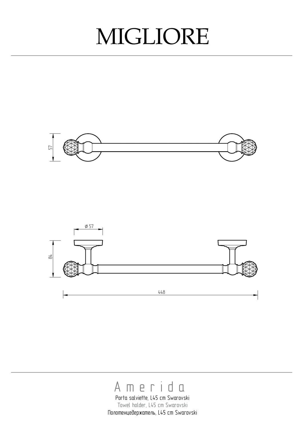 Migliore Amerida Полотенцедержатель 45 см, Swarovski, цвет: золото 16604 и другие сантехнические изделия бренда характеризует надежность, высокое качество и продолжительный срок службы. Изделие в стилистике прованс впечатляюще будет смотреться в различных цветовых решениях помещения.