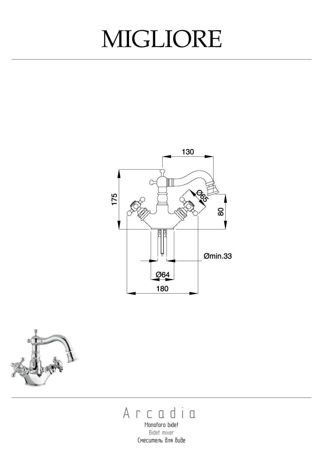 Migliore Arcadia Смеситель для биде, цвет: бронза 18377 и другие сантехнические изделия бренда характеризует надежность, высокое качество и продолжительный срок службы. Изделие в стилистике прованс впечатляюще будет смотреться в различных цветовых решениях помещения.
