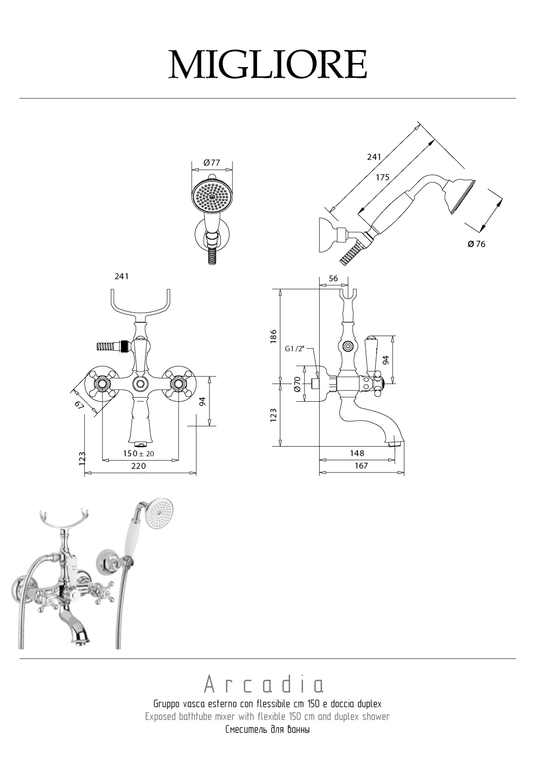 Migliore Arcadia Смеситель для ванны внешний, цвет: золото 18394 и другие сантехнические изделия бренда характеризует надежность, высокое качество и продолжительный срок службы. Изделие в стилистике прованс впечатляюще будет смотреться в различных цветовых решениях помещения.