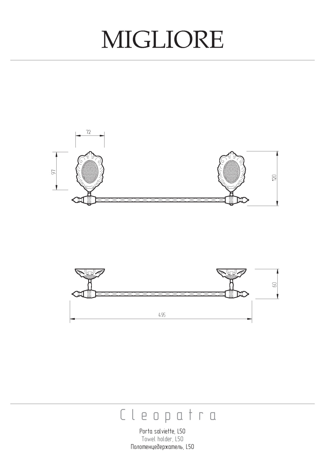 Migliore Cleopatra Полотенцедержатель 50 см, цвет: хром 16669 и другие сантехнические изделия бренда характеризует надежность, высокое качество и продолжительный срок службы. Изделие в стилистике английская классика впечатляюще будет смотреться в различных цветовых решениях помещения.