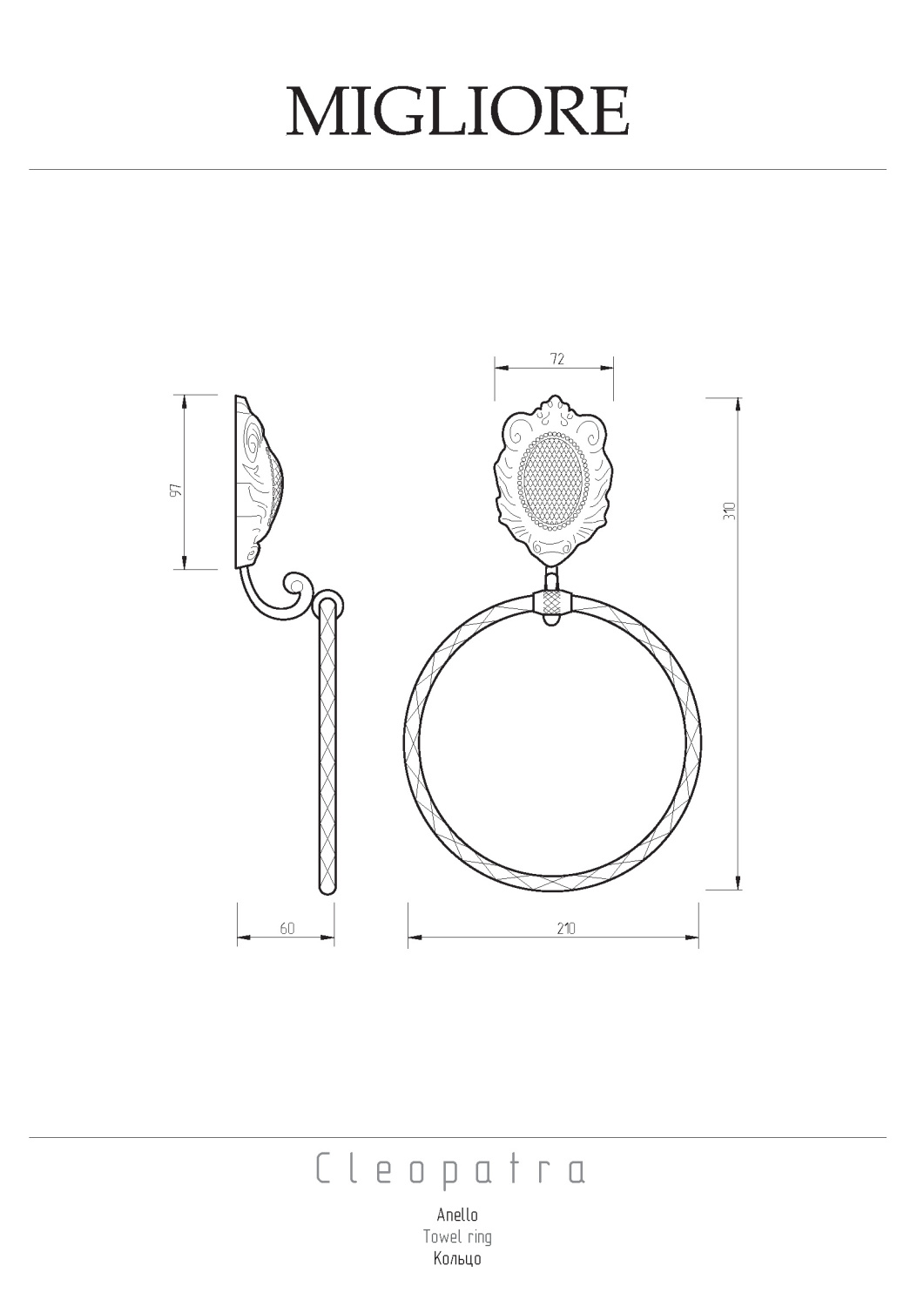 Migliore Cleopatra Полотенцедержатель-кольцо, цвет: бронза 16632 и другие сантехнические изделия бренда характеризует надежность, высокое качество и продолжительный срок службы. Изделие в стилистике английская классика впечатляюще будет смотреться в различных цветовых решениях помещения.