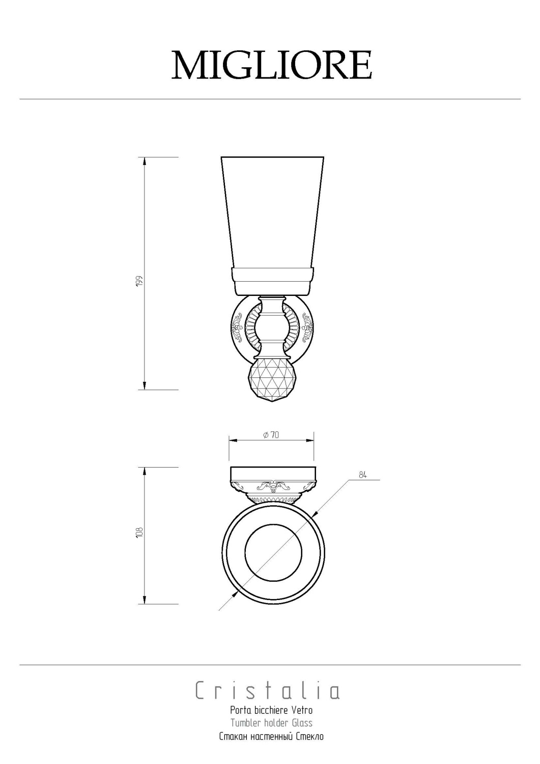 Migliore Cristalia Cтакан настенный, стекло, Swarovski, цвет: хром 16788 и другие сантехнические изделия бренда характеризует надежность, высокое качество и продолжительный срок службы. Изделие в стилистике английская классика впечатляюще будет смотреться в различных цветовых решениях помещения.
