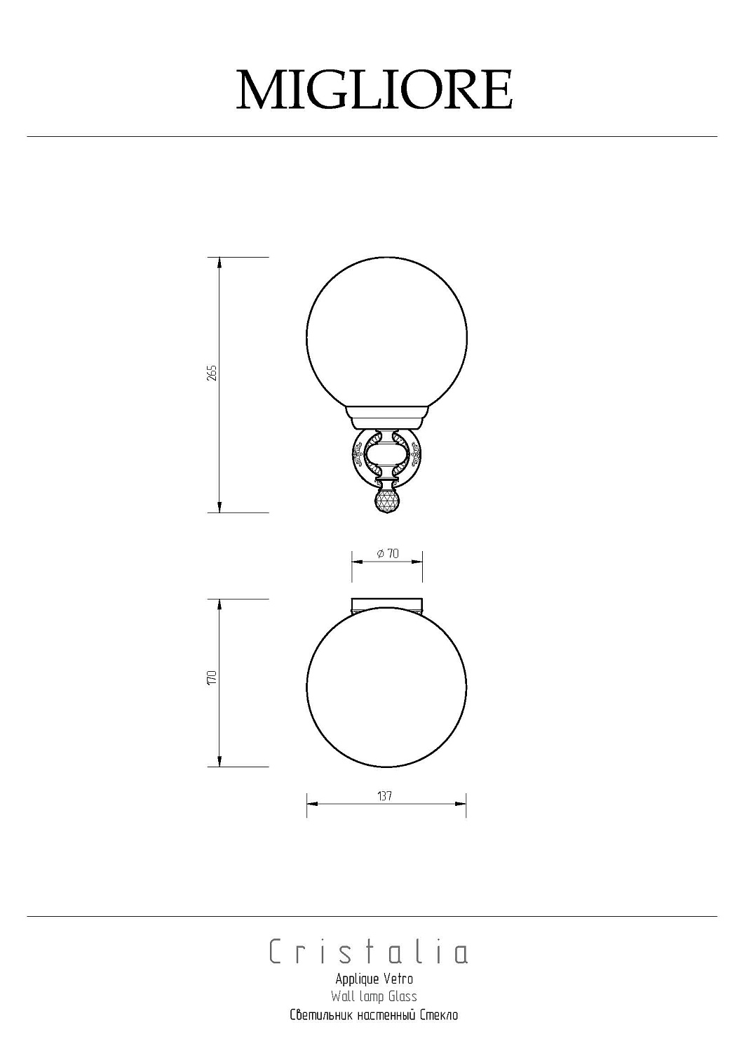 Migliore Cristalia Светильник настенный, стекло, Swarovski, цвет: бронза 16782 и другие сантехнические изделия бренда характеризует надежность, высокое качество и продолжительный срок службы. Изделие в стилистике английская классика впечатляюще будет смотреться в различных цветовых решениях помещения.