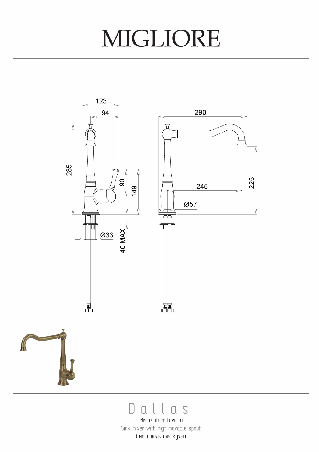 Migliore Dallas Cucina Смеситель для кухни монокомандный, цвет: хром 18219 и другие сантехнические изделия бренда характеризует надежность, высокое качество и продолжительный срок службы. Изделие в стилистике прованс впечатляюще будет смотреться в различных цветовых решениях помещения.