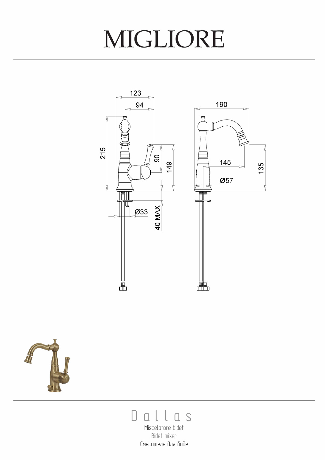 Migliore Dallas Смеситель для биде монокомандный, цвет: хром 18600 и другие сантехнические изделия бренда характеризует надежность, высокое качество и продолжительный срок службы. Изделие в стилистике прованс впечатляюще будет смотреться в различных цветовых решениях помещения.