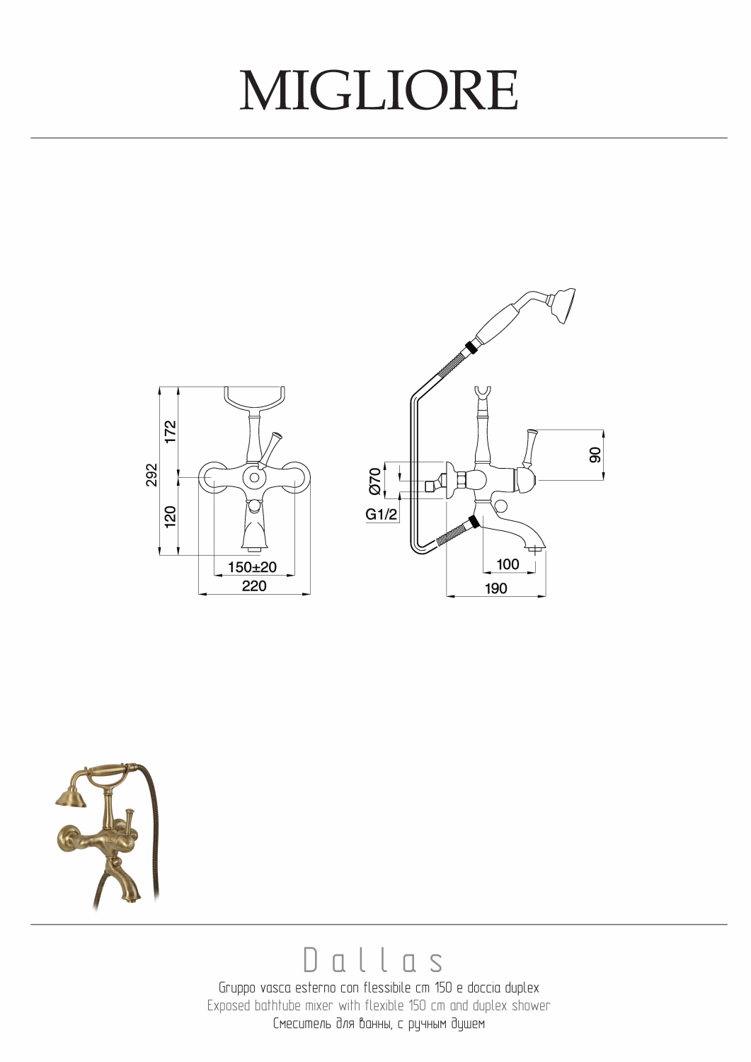Migliore Dallas Смеситель для ванны монокомандный внешний, цвет: бронза 18596 и другие сантехнические изделия бренда характеризует надежность, высокое качество и продолжительный срок службы. Изделие в стилистике прованс впечатляюще будет смотреться в различных цветовых решениях помещения.