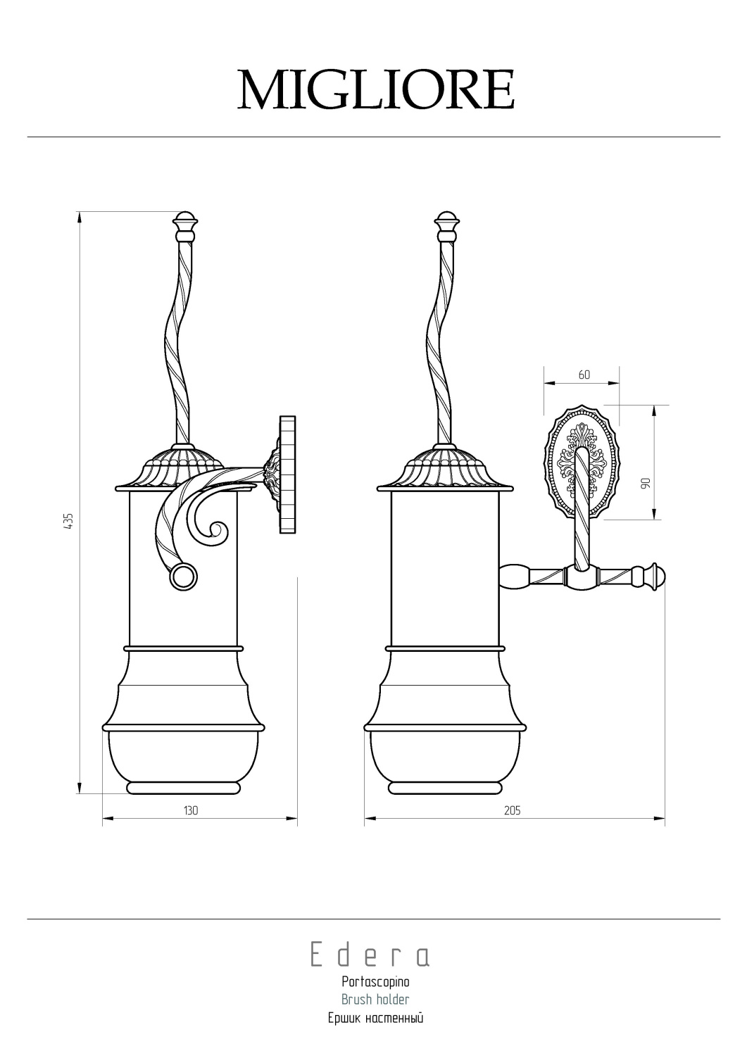 Закажите Migliore Edera Ершик настенный, цвет: золото 16939 от производителя Migliore, коллекция Edera в салоне европейской сантехники Дизайн Сантехники с быстрой доставкой по Москве. Представлены подробные характеристики и фотографии, которые позволят сделать правильный выбор и заказать товар.