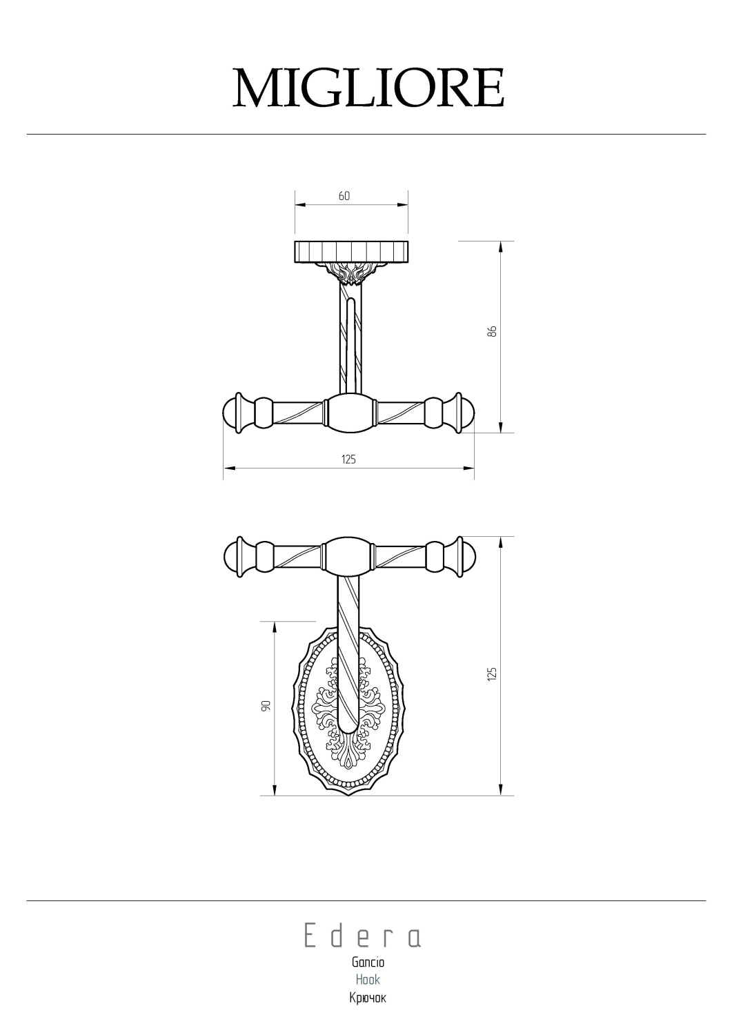 Migliore Edera Крючок, цвет: золото 16942 и другие сантехнические изделия бренда характеризует надежность, высокое качество и продолжительный срок службы. Изделие в стилистике прованс впечатляюще будет смотреться в различных цветовых решениях помещения.