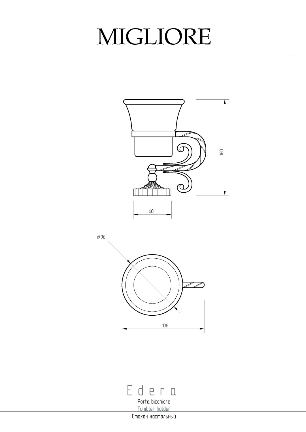 Закажите Migliore Edera Стакан настольный, керамика, цвет: хром 16929 от производителя Migliore, коллекция Edera в салоне европейской сантехники Дизайн Сантехники с быстрой доставкой по Москве. Представлены подробные характеристики и фотографии, которые позволят сделать правильный выбор и заказать товар.