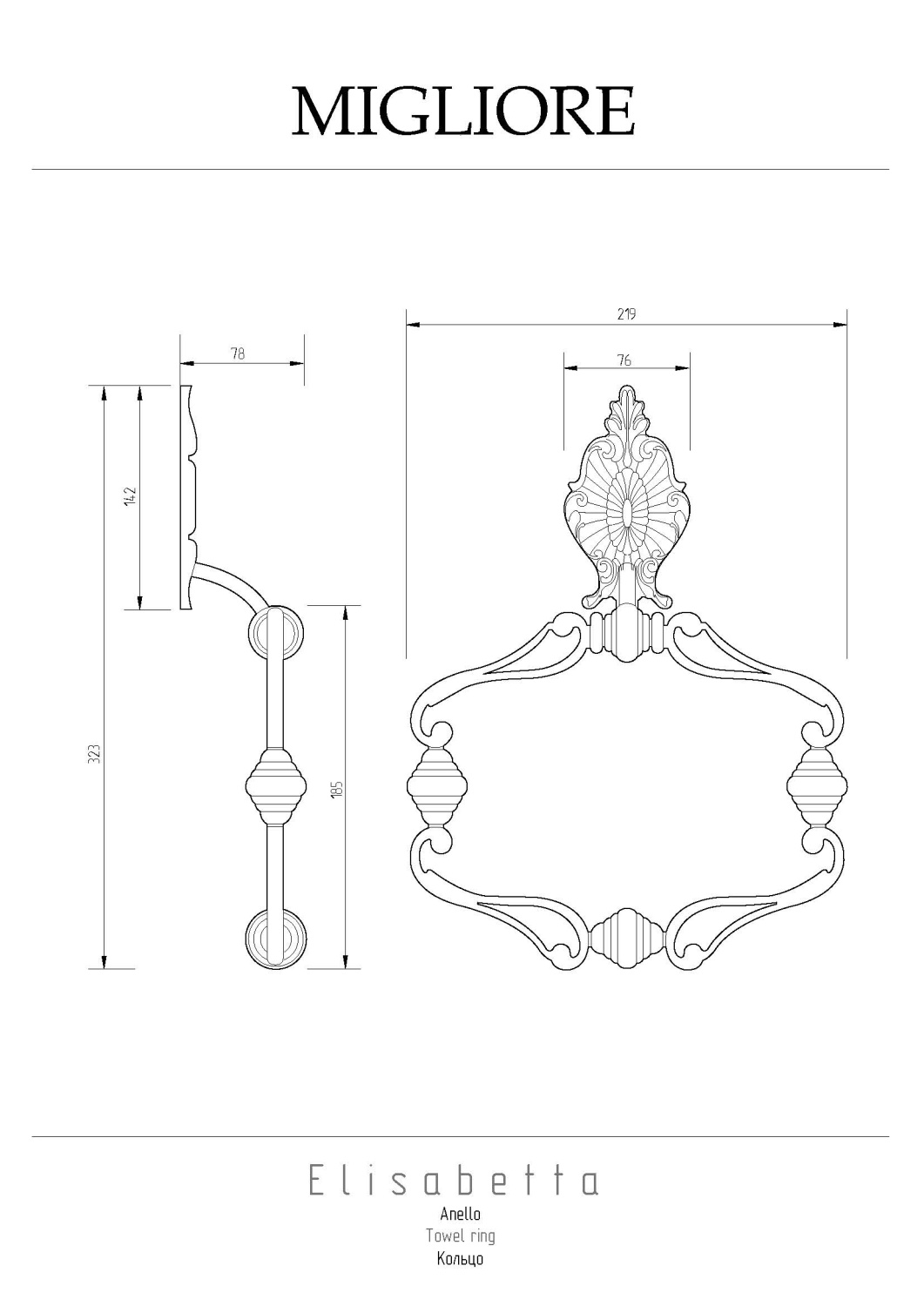 Migliore Elisabetta Полотенцедержатель-кольцо, цвет: золото 17067 и другие сантехнические изделия бренда характеризует надежность, высокое качество и продолжительный срок службы. Изделие в стилистике английская классика впечатляюще будет смотреться в различных цветовых решениях помещения.