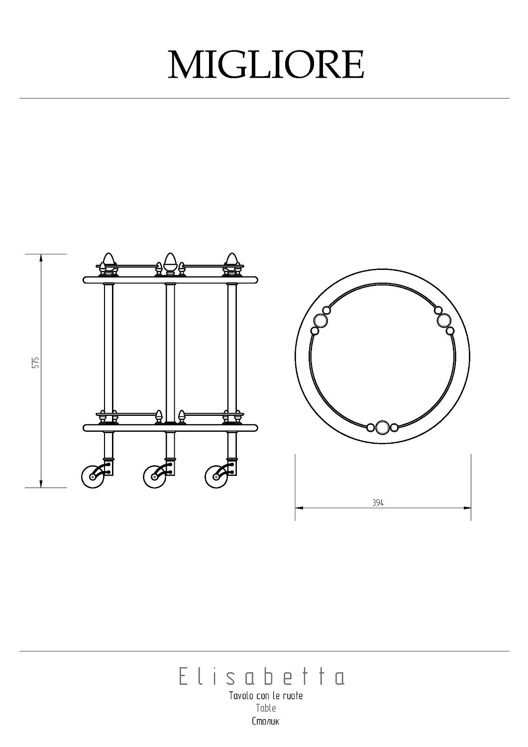 Закажите Migliore Elisabetta Столик на колёсиках d40x57h, стекло, цвет: золото 17082 от производителя Migliore, коллекция Elisabetta в салоне европейской сантехники Дизайн Сантехники с быстрой доставкой по Москве. Представлены подробные характеристики и фотографии, которые позволят сделать правильный выбор и заказать товар.