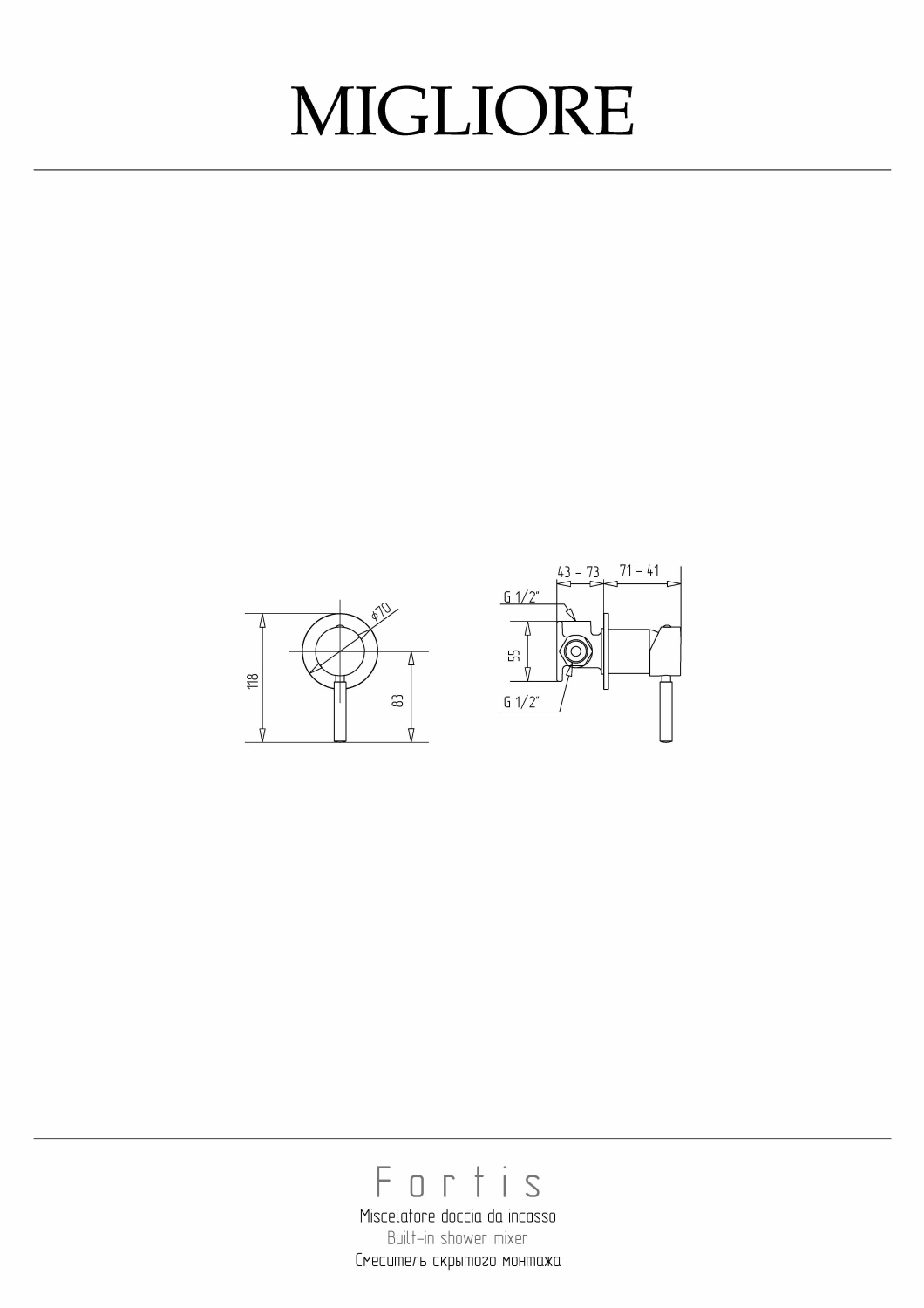 Migliore Fortis Смеситель скрытого монтажа монокомандный, цвет: хром 18668 и другие сантехнические изделия бренда характеризует надежность, высокое качество и продолжительный срок службы. Изделие в стилистике лофт впечатляюще будет смотреться в различных цветовых решениях помещения.