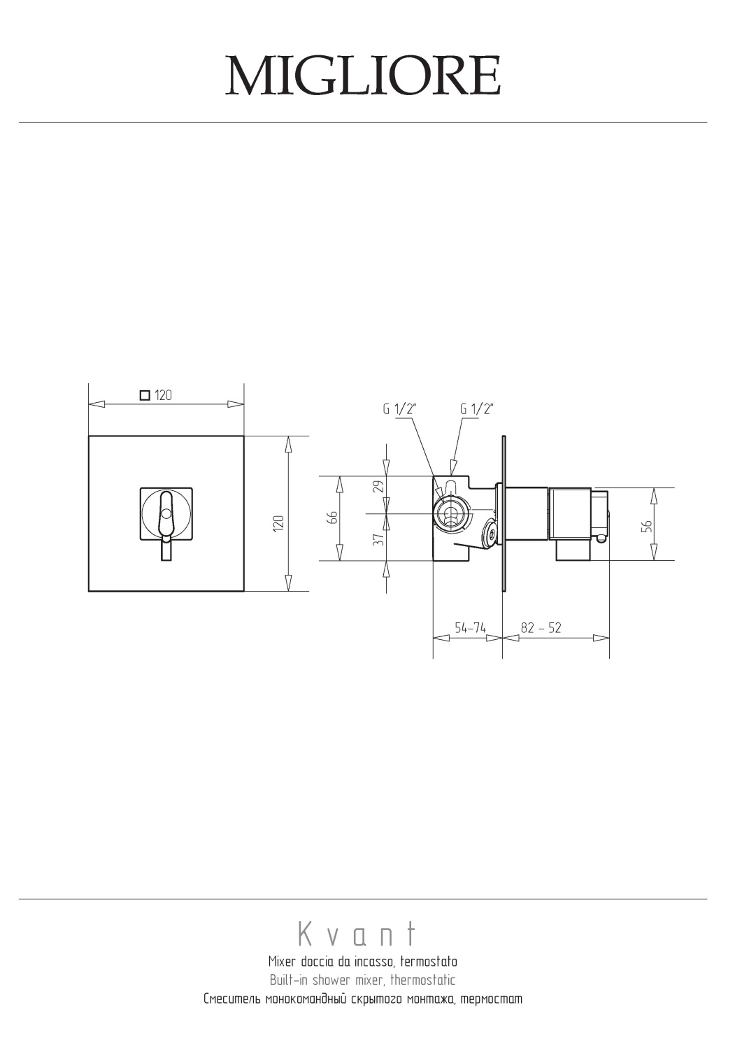 Migliore Kvant Смеситель скрытого монтажа монокомандный, термостатический, цвет: хром 25403 и другие сантехнические изделия бренда характеризует надежность, высокое качество и продолжительный срок службы. Изделие в стилистике арт-деко впечатляюще будет смотреться в различных цветовых решениях помещения.