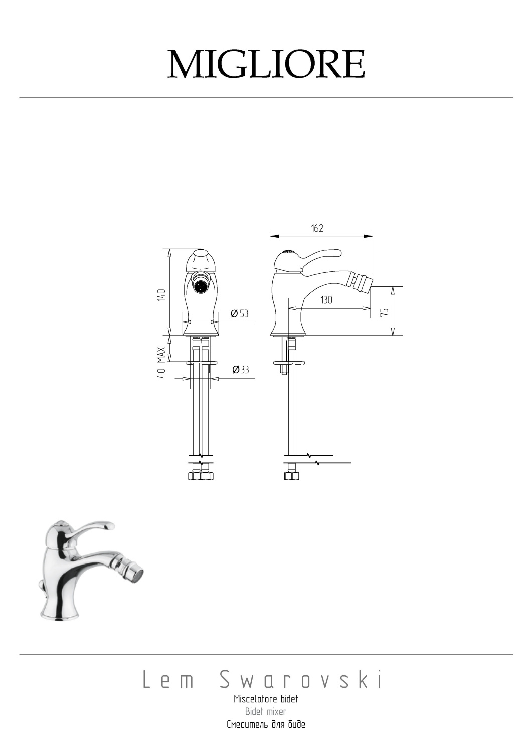 Закажите Migliore Lem Swarovski Смеситель для биде монокомандный, цвет: золото 18889 от производителя Migliore, коллекция Lem Swarovski в салоне европейской сантехники Дизайн Сантехники с быстрой доставкой по Москве. Представлены подробные характеристики и фотографии, которые позволят сделать правильный выбор и заказать товар.