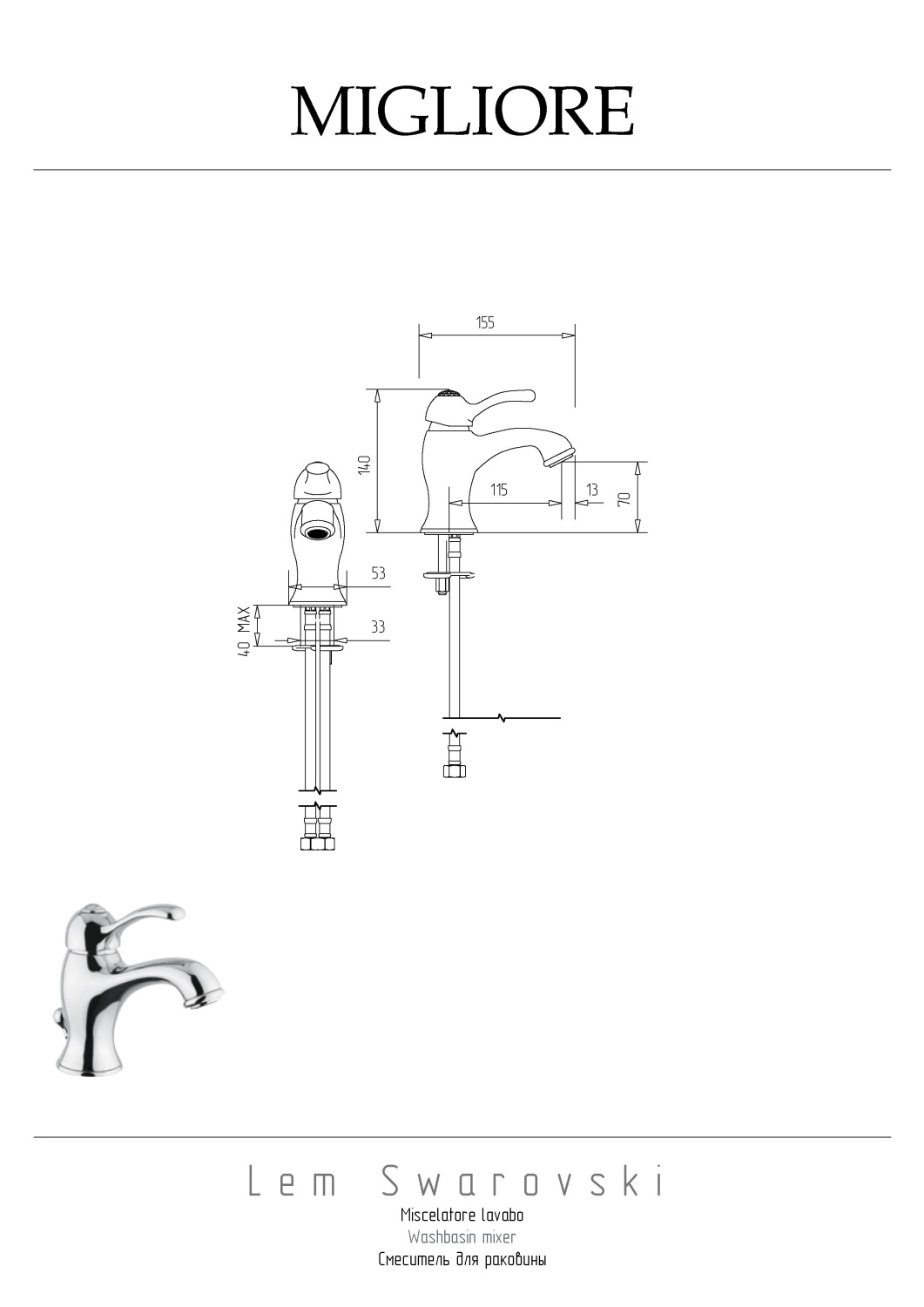 Migliore Lem Swarovski Смеситель для раковины монокомандный, цвет: хром 18884 и другие сантехнические изделия бренда характеризует надежность, высокое качество и продолжительный срок службы. Изделие в стилистике прованс впечатляюще будет смотреться в различных цветовых решениях помещения.
