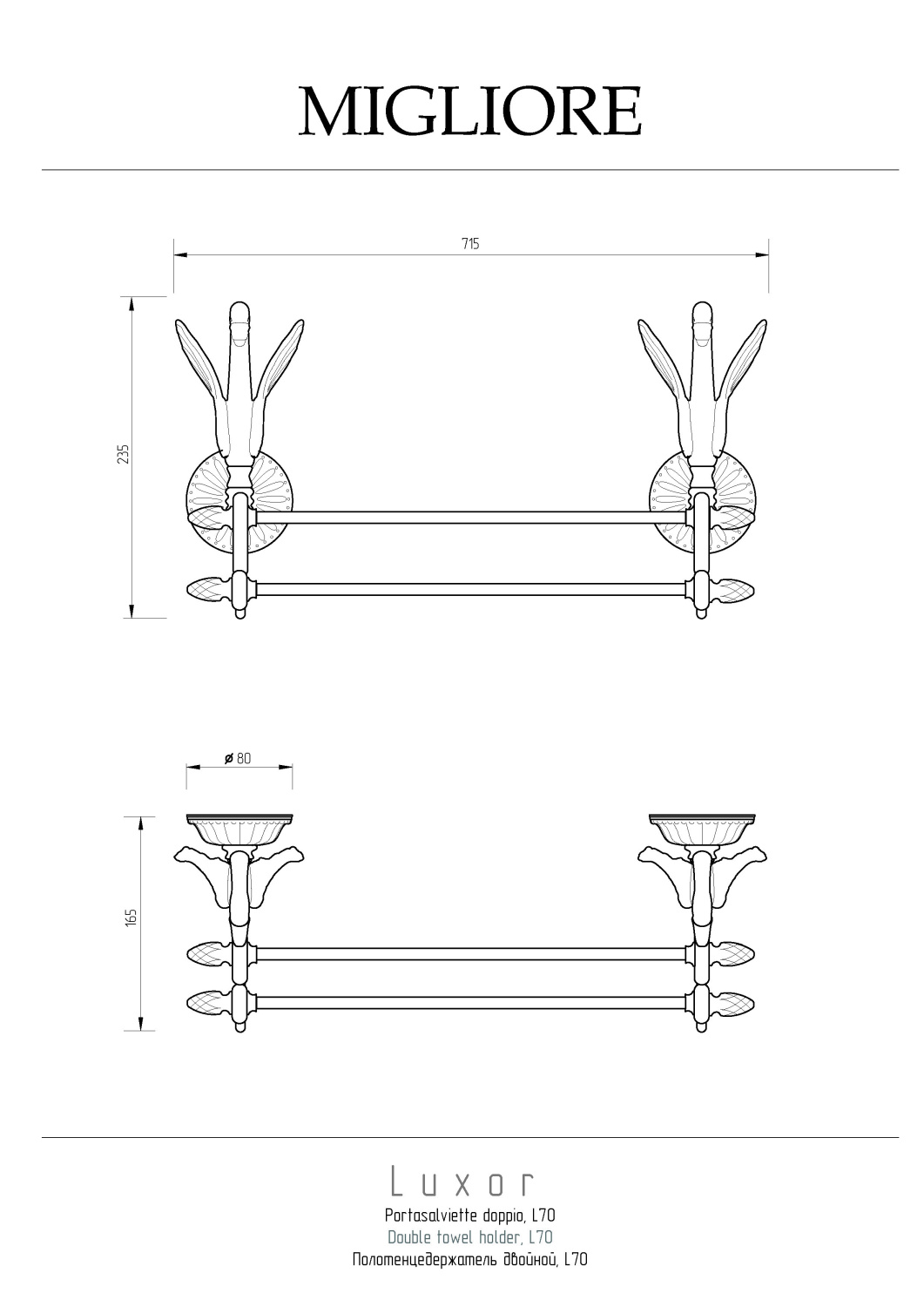 Закажите Migliore Luxor Полотенцедержатель 70 см, двойной, цвет: золото 26134 от производителя Migliore, коллекция Luxor в салоне европейской сантехники Дизайн Сантехники с быстрой доставкой по Москве. Представлены подробные характеристики и фотографии, которые позволят сделать правильный выбор и заказать товар.