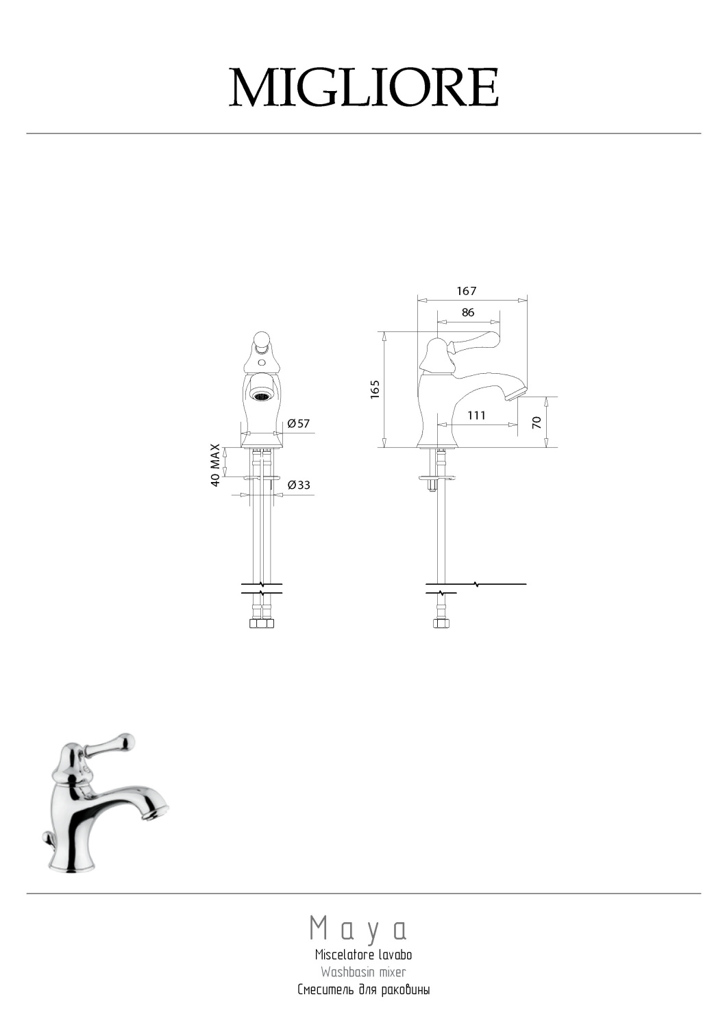 Закажите Migliore Maya Смеситель для раковины монокомандный, цвет: хром 18924 от производителя Migliore, коллекция Maya в салоне европейской сантехники Дизайн Сантехники с быстрой доставкой по Москве. Представлены подробные характеристики и фотографии, которые позволят сделать правильный выбор и заказать товар.