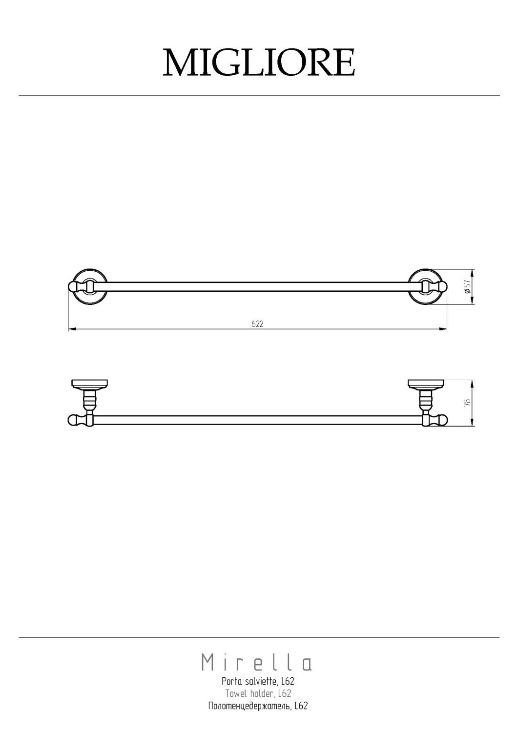 Migliore Mirella Полотенцедержатель 62 см, цвет: золото 17331 и другие сантехнические изделия бренда характеризует надежность, высокое качество и продолжительный срок службы. Изделие в стилистике прованс впечатляюще будет смотреться в различных цветовых решениях помещения.