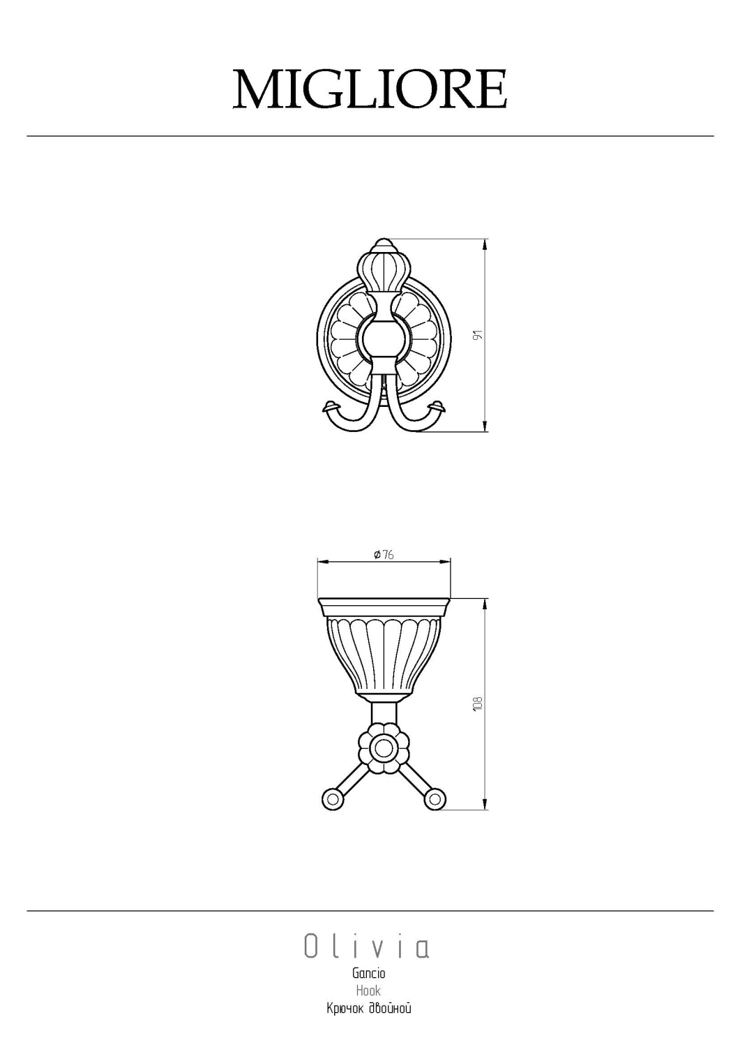 Закажите Migliore Olivia Крючок, керамика, цвет: белый/золото 17461 от производителя Migliore, коллекция Olivia в салоне европейской сантехники Дизайн Сантехники с быстрой доставкой по Москве. Представлены подробные характеристики и фотографии, которые позволят сделать правильный выбор и заказать товар.