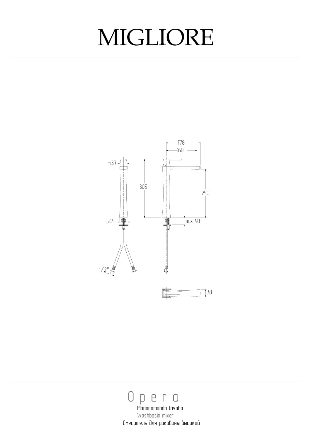 Migliore Opera Смеситель для раковины монокомандный высокий, цвет: золото 19054 и другие сантехнические изделия бренда характеризует надежность, высокое качество и продолжительный срок службы. Изделие в стилистике арт-деко впечатляюще будет смотреться в различных цветовых решениях помещения.
