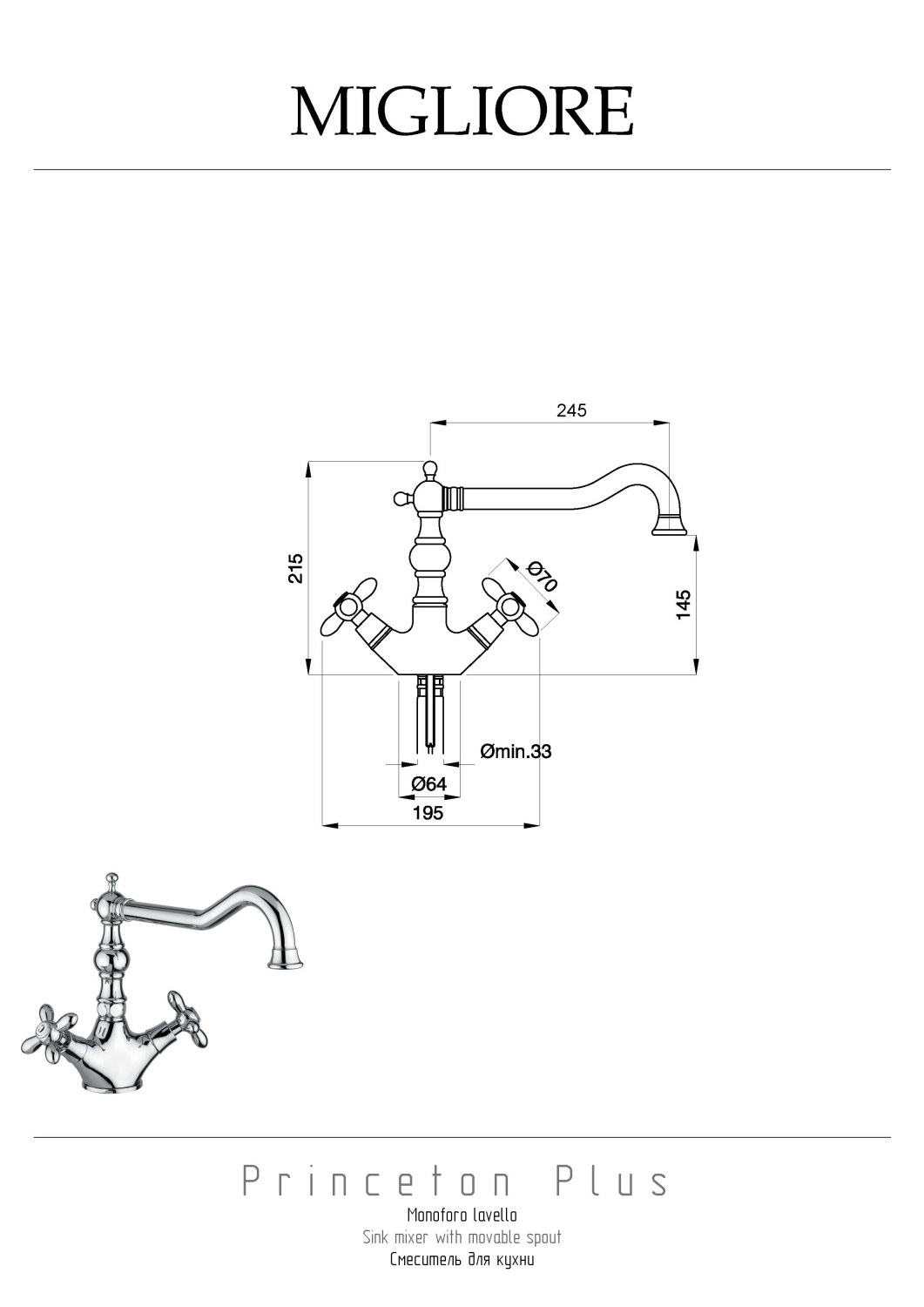 Migliore Princeton Plus Cucina Смеситель для кухни, цвет: золото 18277 и другие сантехнические изделия бренда характеризует надежность, высокое качество и продолжительный срок службы. Изделие в стилистике прованс впечатляюще будет смотреться в различных цветовых решениях помещения.