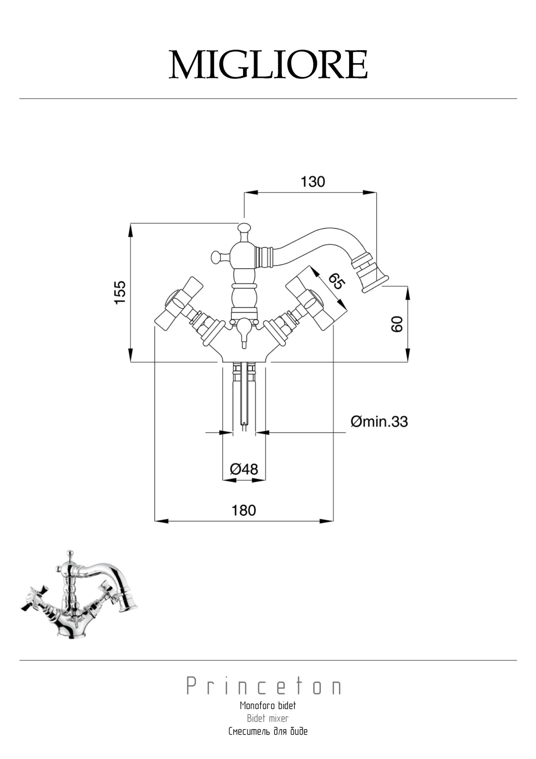 Migliore Princeton Смеситель для биде, цвет: хром 19355 и другие сантехнические изделия бренда характеризует надежность, высокое качество и продолжительный срок службы. Изделие в стилистике английская классика впечатляюще будет смотреться в различных цветовых решениях помещения.