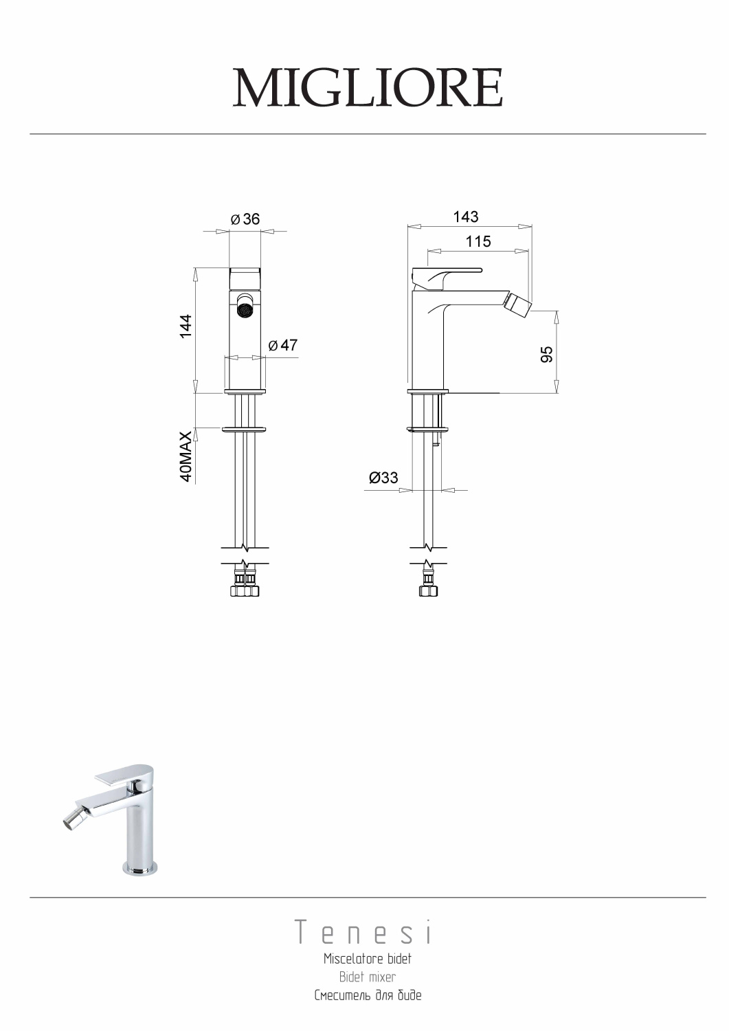 Migliore Tenesi Смеситель для биде монокомандный, цвет: хром 25418 и другие сантехнические изделия бренда характеризует надежность, высокое качество и продолжительный срок службы. Изделие в стилистике минимализм впечатляюще будет смотреться в различных цветовых решениях помещения.