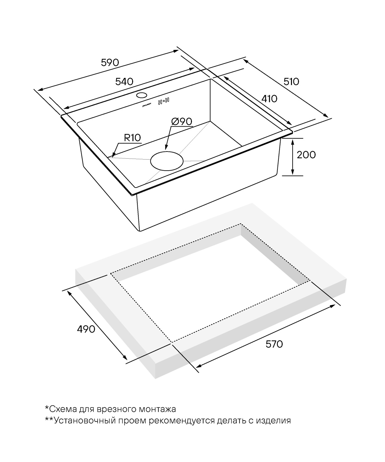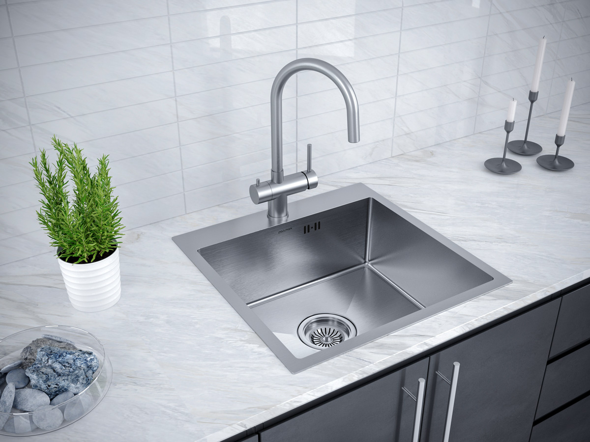 Paulmark Kroner Кухонная мойка нержавеющая сталь 59x51 см, цвет: брашированная сталь PM215951-BS и другие сантехнические изделия бренда характеризует надежность, высокое качество и продолжительный срок службы. Изделие в стилистике минимализм впечатляюще будет смотреться в различных цветовых решениях помещения.