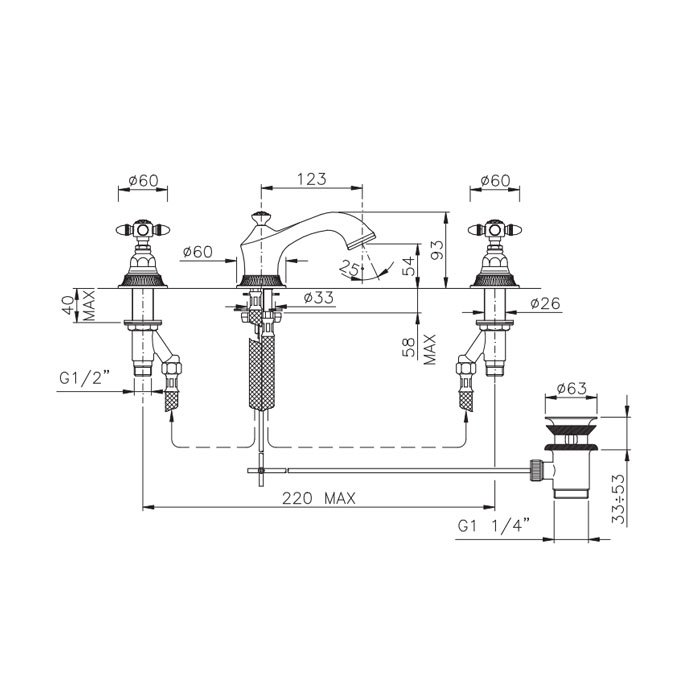 Nicolazzi Impero Смеситель для раковины, на 3 отв., цвет: золото 1208GO36L и другие сантехнические изделия бренда характеризует надежность, высокое качество и продолжительный срок службы. Изделие в стилистике арт-деко впечатляюще будет смотреться в различных цветовых решениях помещения.