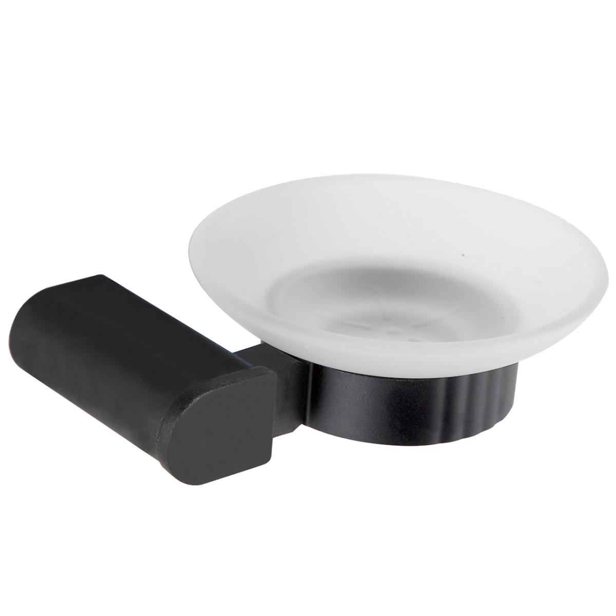 Мыльница черная с настенными креплениями в комплекте. Аксессуар изготовлен из алюминия, что обеспечивает легкий монтаж, а также долгий срок службы.