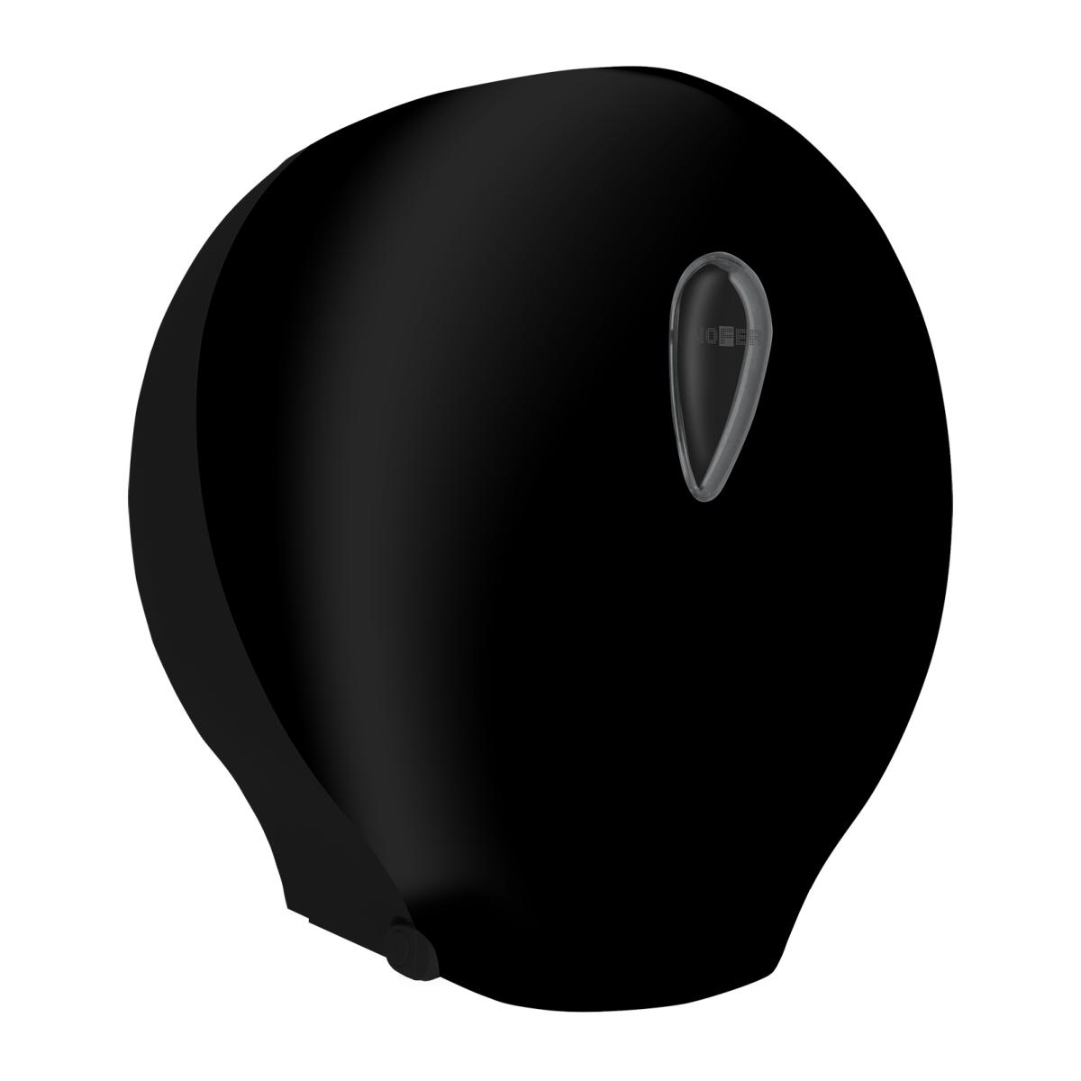 Диспенсер рулонной туалетной бумаги изготовлен из черного ABS-пластика и прозрачного окошка. Предназначен для настенного монтажа. Просмотр содержимого через прозрачное окошко. Замок с ключом безопасности в комплекте.